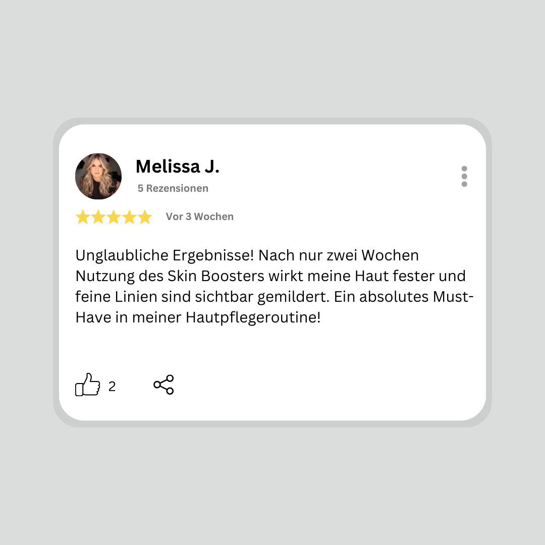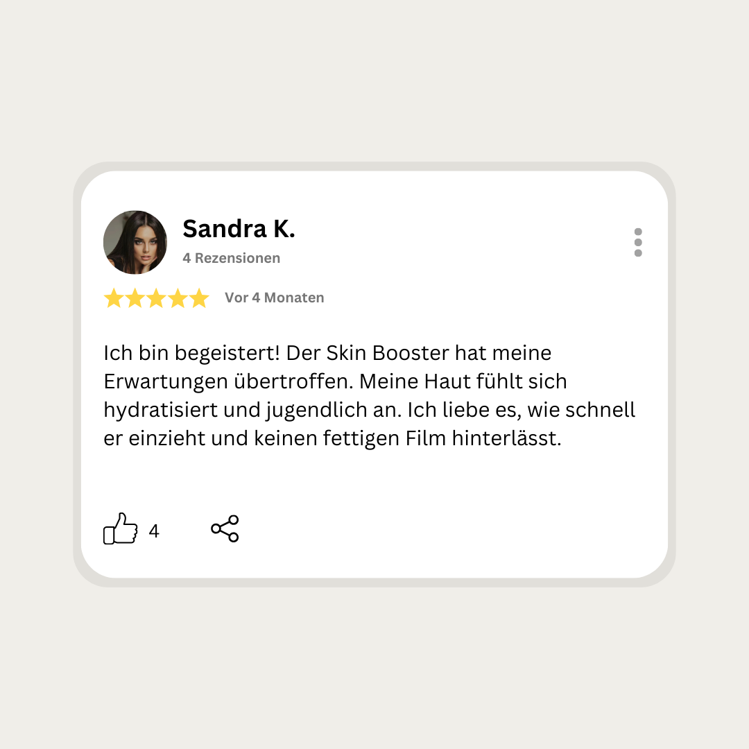 Fügen Sie unseren Skin Booster Ihrer Routine hinzu und erleben Sie sichtbare Hautverbesserungen und nachhaltige Pflege.